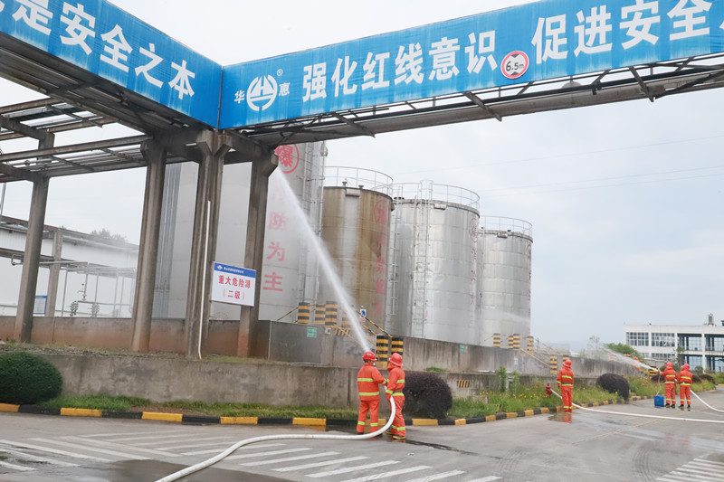 為進(jìn)一步提升重大危險(xiǎn)源安全管控水平以及公司各部門人員應(yīng)對(duì)突發(fā)事故的快速反應(yīng)、自救互救、應(yīng)急處置能力,6月25日上午9時(shí),華惠公司開展了甲醇打料泵法蘭發(fā)生大量泄漏應(yīng)急演練。