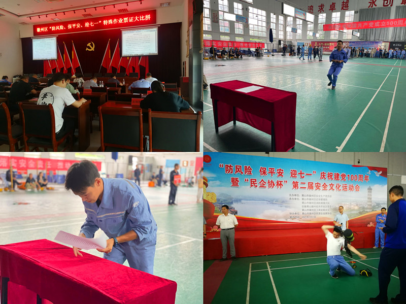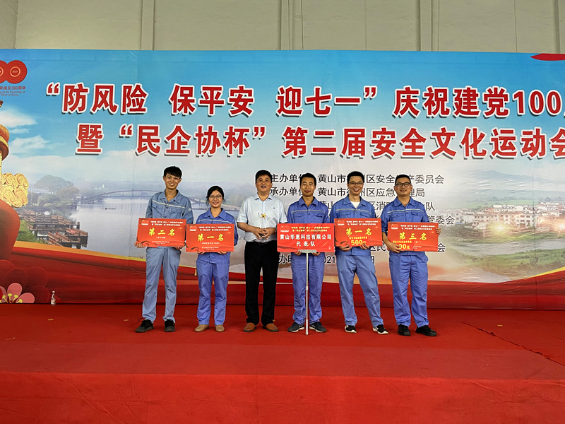 2021年7月1日,華惠科技代表隊(duì)參加了徽州區(qū)舉辦的“防風(fēng)險(xiǎn),保平安,迎七一”慶祝建黨100周年暨“民企協(xié)杯”第二屆安全文化運(yùn)動(dòng)會(huì),全區(qū)共24家企業(yè)代表隊(duì)共150余人參加此次運(yùn)動(dòng)會(huì)。運(yùn)動(dòng)會(huì)共設(shè)置了大家來(lái)找“茬”、特殊作業(yè)票證大比拼、穿戴比拼和接力奔跑等比賽項(xiàng)目。