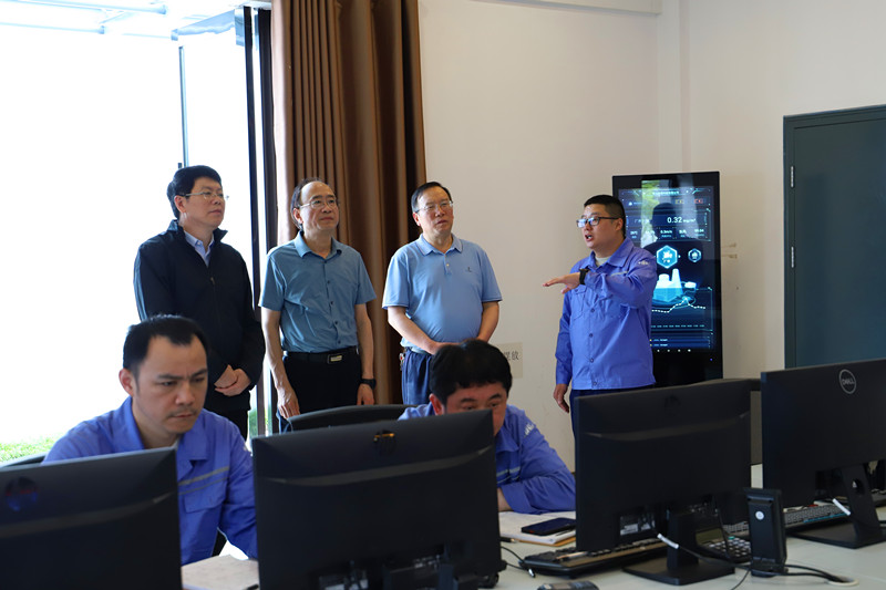 夏輯一行到公司中控室參觀,聽取了公司制造數(shù)字化升級,安全環(huán)保物聯(lián)網(wǎng)系統(tǒng)運行等介紹。