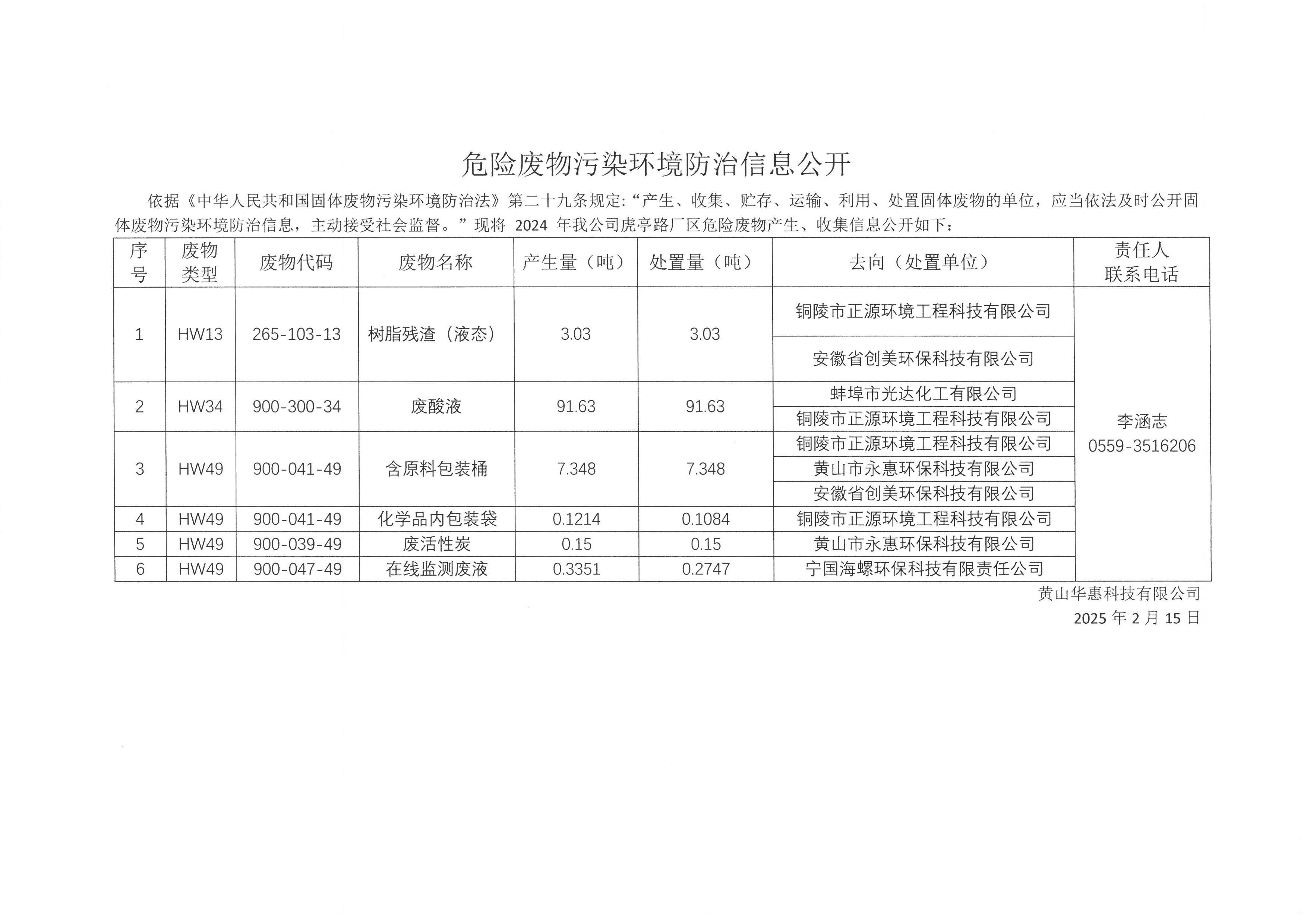 黃山華惠科技有限公司危險(xiǎn)廢物污染防治信息公示