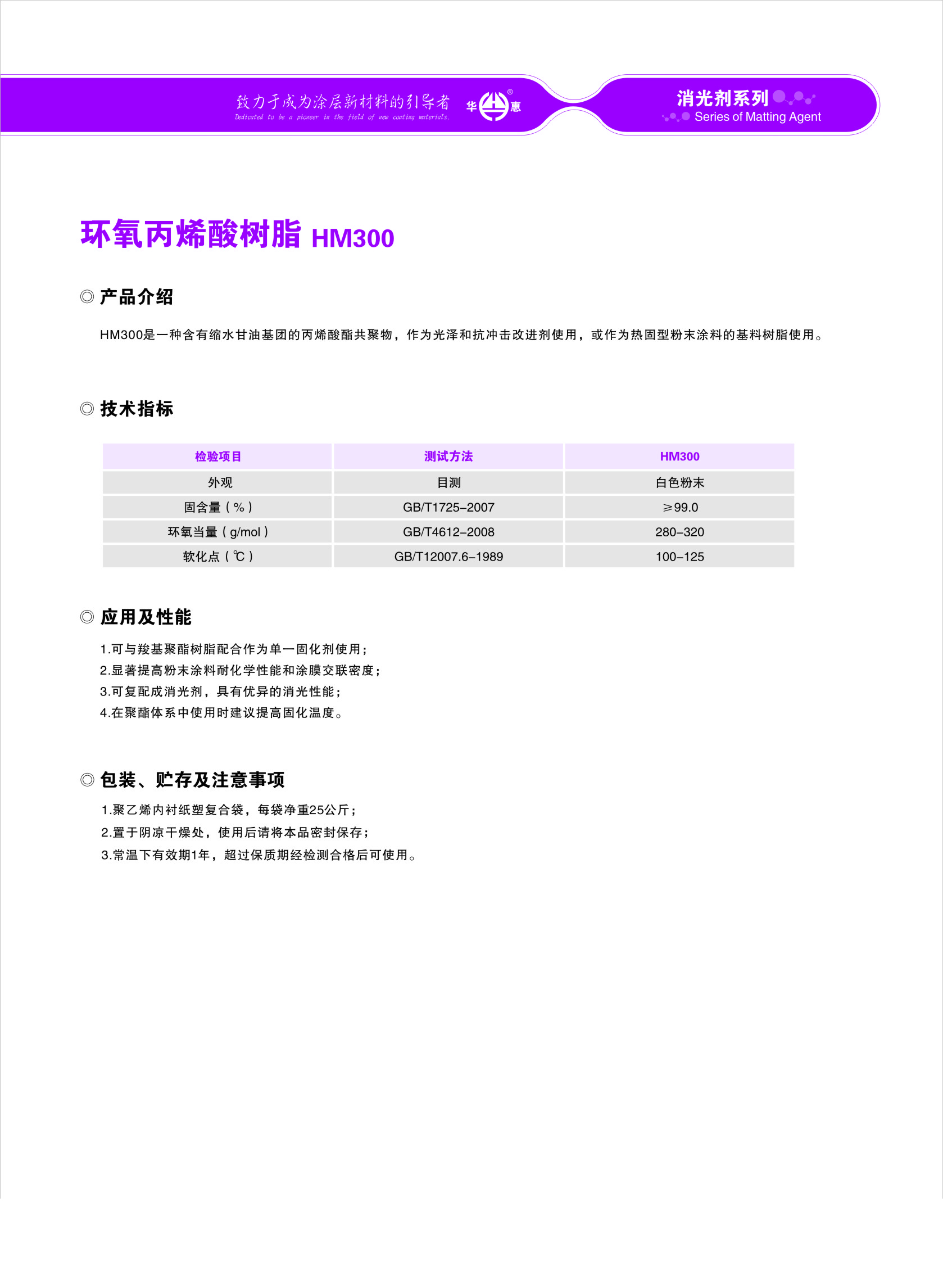 環(huán)氧丙烯酸樹脂HM300-消光劑系列-黃山華惠科技有限公司